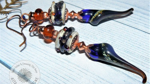 Boucles d'oreilles bohème chic ⚜ DESERT ⚜ Bijou de créateur artisanal, verre filé, cuivre émaillé, acier inox - Idée cadeau FEMME anniversaire, fêtes, Noël