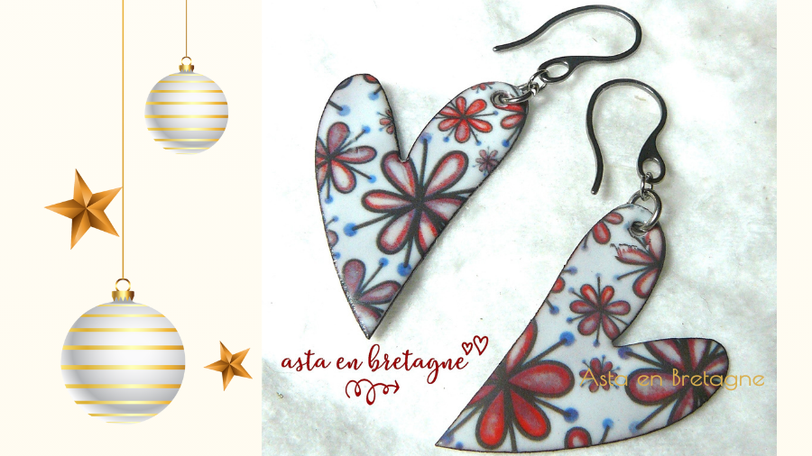 Boucles d'oreilles bohème chic ⚜ HORTENSIAS ⚜ Bijou de créateur artisanal, cuivre brut, cuivre émaillé - Idée cadeau FEMME anniversaire, fêtes, Noël