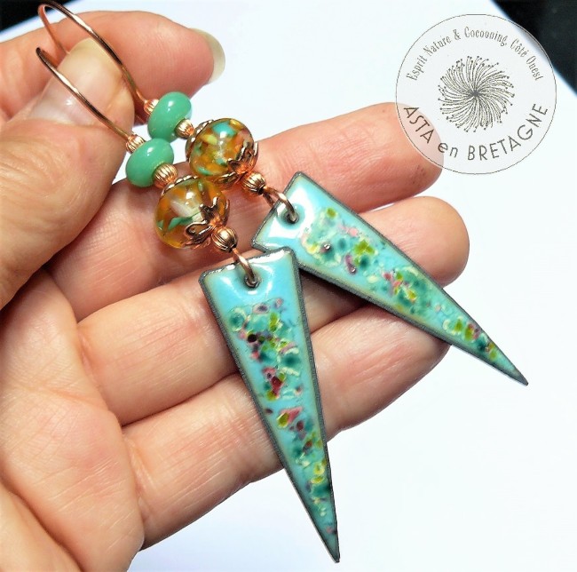 Boucles d'oreilles bohème-chic, bijou artisanal boho, romantique, féerique, ethnique, hippie chic, gipsy, verre filé, cuivre - Idée cadeau, accessoires femme, accessoire bijoux, bijoux femme, cadeau spécial, cadeau pour elle, anniversaire, fêtes, Noel, St Valentin, fêtes des mères